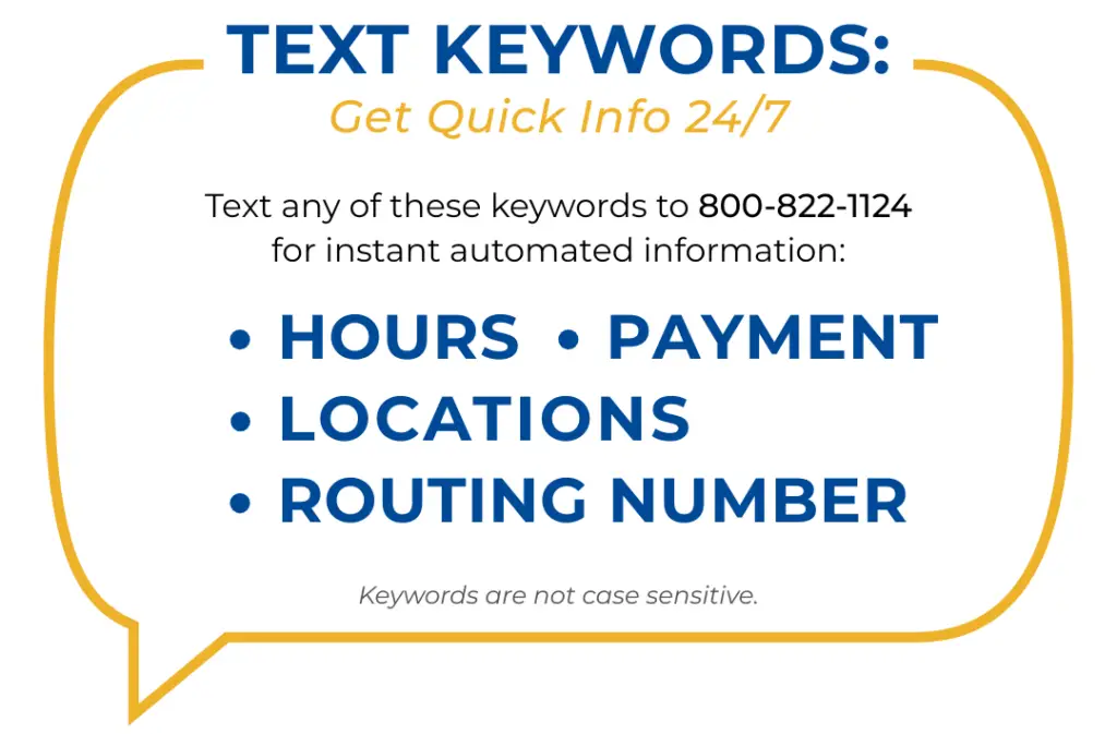 Please contact Member Services at 800-822-1124 if you have any questions or concerns about text messages or other communications you receive from the Credit Union.